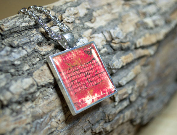 This beautiful RASBERRY RED art pendant necklace is handmade from one of my original abstract paintings, which I've digitally altered. The art print was set into a sturdy silver-plated square bezel tray and then sealed with liquid resin. Your pendant will arrive nicely packaged, which makes it a wonderful unique art gift for yourself or your loved ones.